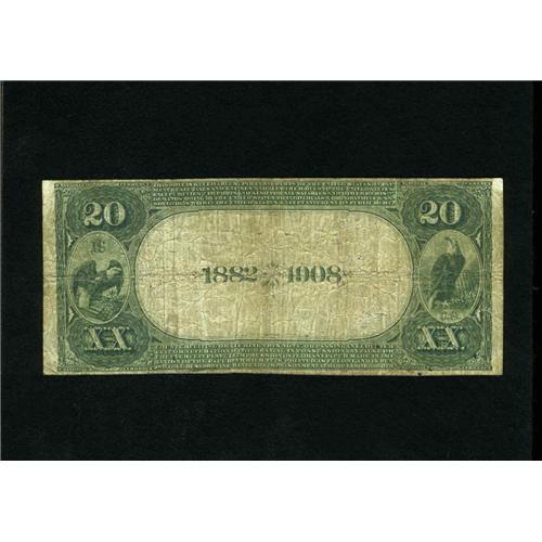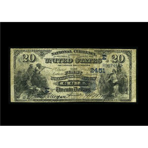 <B>Cuba, NY</B></I> - $20 1882 Date Back Fr. 555 <B>The First NB</B></I> Ch. # (E)2451<BR>A scarce type and denomination from this by no means common bank, from which the census lists only one other Date Back. <B>Fine,</B></I> with a bit of soiling considerably offset by the nice pen signatures.