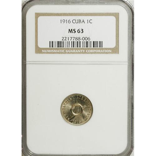 Cuba: Republic 1 Centavo 1916: KM-9.1, MS63 NGC.