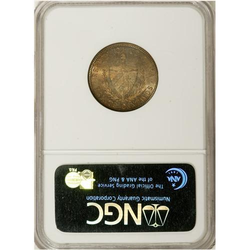<B>Republic 20 Centavos 1916, </B></I>KM13.2, MS64 NGC, deeply toned and very attractive, rarely seen graded this high.<BR><BR><b>Shipping:</b> Coins & Currency (<a target="_blank" href="http://www.heritageauctions.com/common/shipping.php">view shipping information</a>)