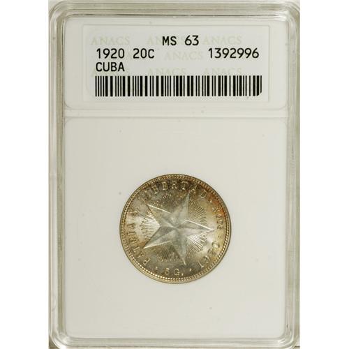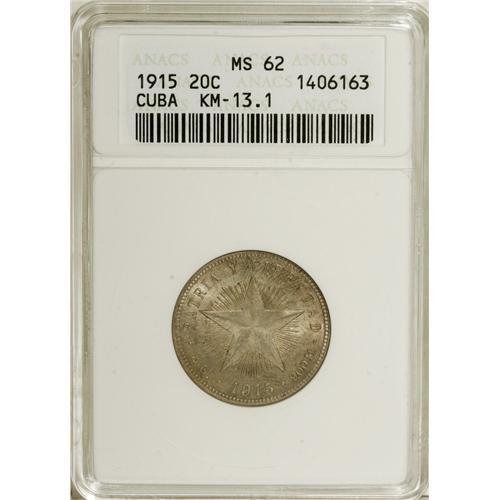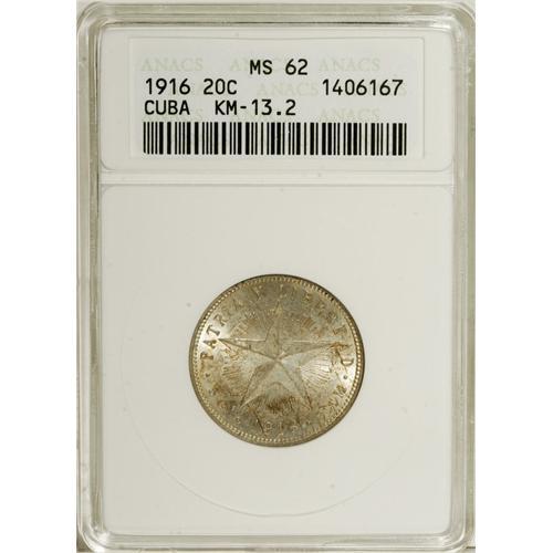 <B>Republic 20 Centavos - Date Trio, </B></I>KM13.1 1915 High Relief Star, MS62 ANACS, KM13.2 1916 MS62 ANACS and 1920 MS63 ANACS. All three are attractive examples with original toning.<BR><BR><b>Shipping:</b> Coins & Currency (<a target="_blank" href="http://www.heritageauctions.com/common/shipping.php">view shipping information</a>)