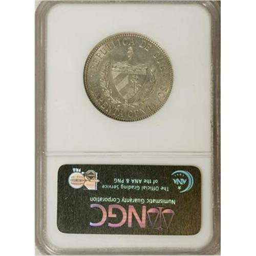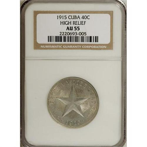 <B>Republic 40 Centavos 1915,</B></I> High Relief, KM-14.1, AU55 NGC.<BR><BR><b>Shipping:</b> Coins & Currency (<a target="_blank" href="http://www.heritageauctions.com/common/shipping.php">view shipping information</a>)