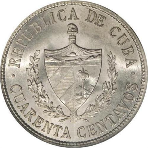 Cuba Republic 40 Centavos 1920 Low Relief,