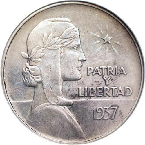 <B>Republic ABC Peso 1937,</B></I> KM22, AU50 NGC, light gray toning, tiny marks on the bust of Libertad, rare date.<BR><BR><b>Shipping:</b> Coins & Currency (<a target="_blank" href="http://www.heritageauctions.com/common/shipping.php">view shipping information</a>)
