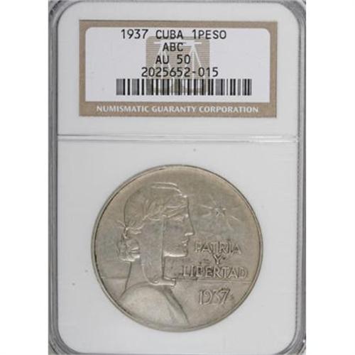 Cuba Republic ABC Peso 1937, KM22, AU50 NGC,
