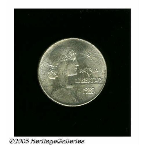 <B>Republic ABC Peso 1939, </B></I>KM22, nice brilliant UNC, full frosty white luster, minimal surface marks - clearly a superior example and worth a premium.