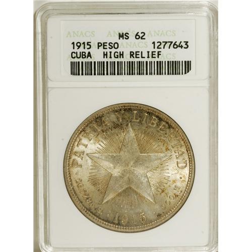 Cuba: Republic Peso 1915 High Relief Star, KM15.