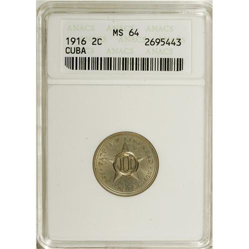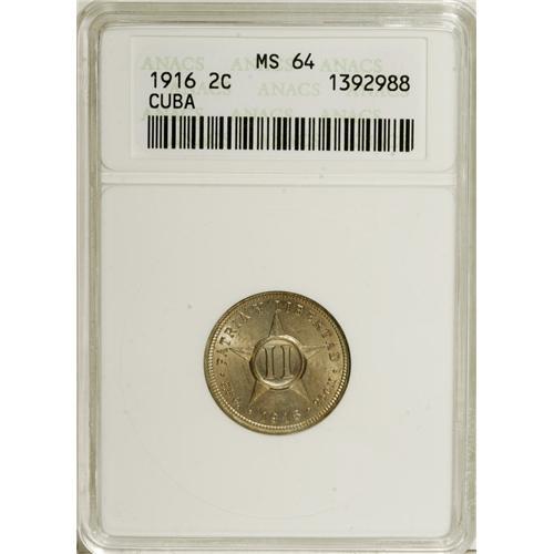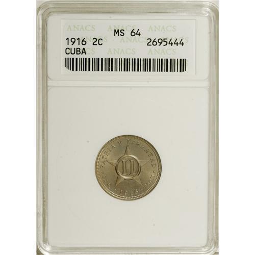 <B>Republic - Trio of ANACS 2 Centavos 1916, </B></I>KM-A10, three nice original examples, all graded MS64.<BR><BR><b>Shipping:</b> Coins & Currency (<a target="_blank" href="http://www.heritageauctions.com/common/shipping.php">view shipping information</a>)