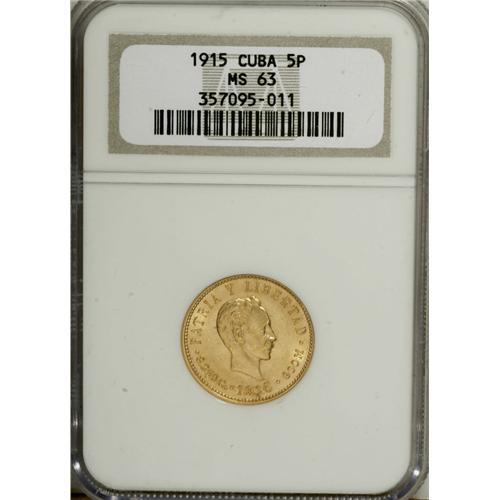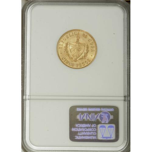 Cuba: Republic gold 5 Pesos 1915, KM19, MS63 NGC