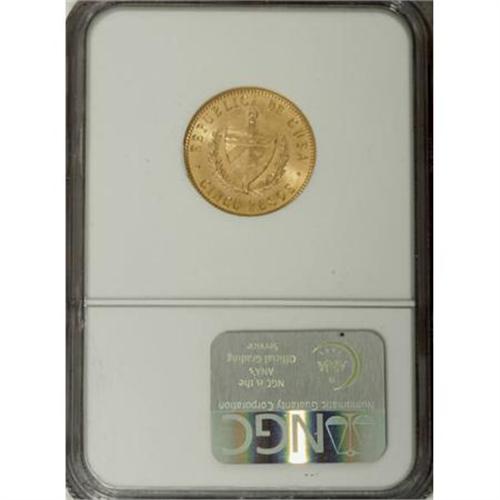 Cuba Republic gold 5 Pesos 1915, KM19, MS63 NGC,