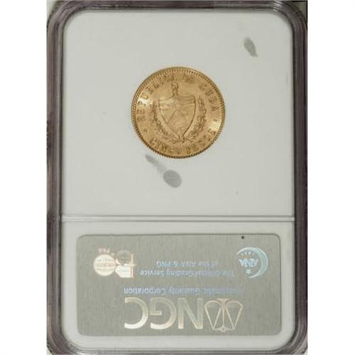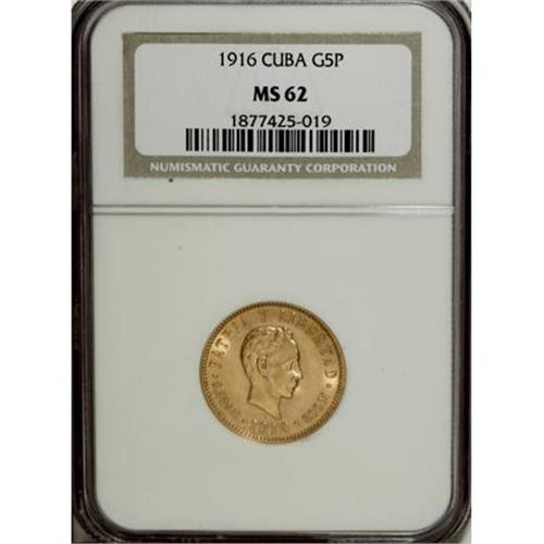 Cuba Republic gold 5 Pesos 1916, KM19, MS62 NGC,