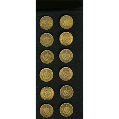 <B>Republic gold 5 Pesos - Twelve Examples, </B></I>KM19, 1915 (5) and 1916 (7). Grades vary from XF to AU. <B>Sold as is, no return lot.</B></I><BR><I>From the Marrero Family Collection.</B></I><BR><BR><b>Shipping:</b> Coins & Currency (<a target="_blank" href="http://www.heritageauctions.com/common/shipping.php">view shipping information</a>)