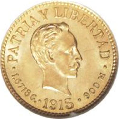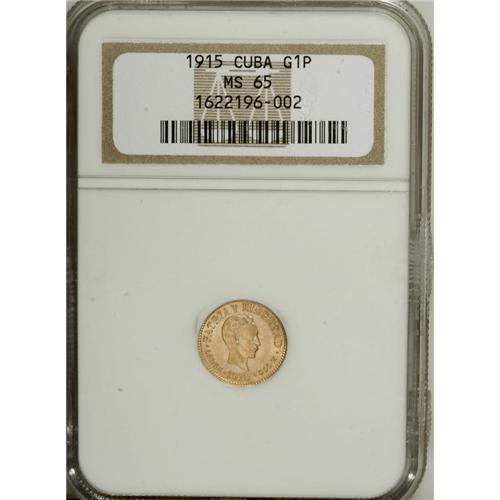 <B>Republic gold Peso 1915, </B></I>KM16, MS65 NGC, full mint brilliance, very scarce grade.<BR><I>From the Marrero Family Collection.</B></I><BR><BR><b>Shipping:</b> Coins & Currency (<a target="_blank" href="http://www.heritageauctions.com/common/shipping.php">view shipping information</a>)