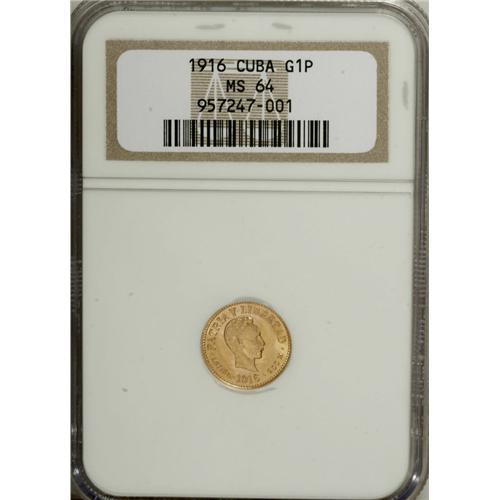 Cuba: Republic gold Peso 1916, KM16, MS64 NGC, a