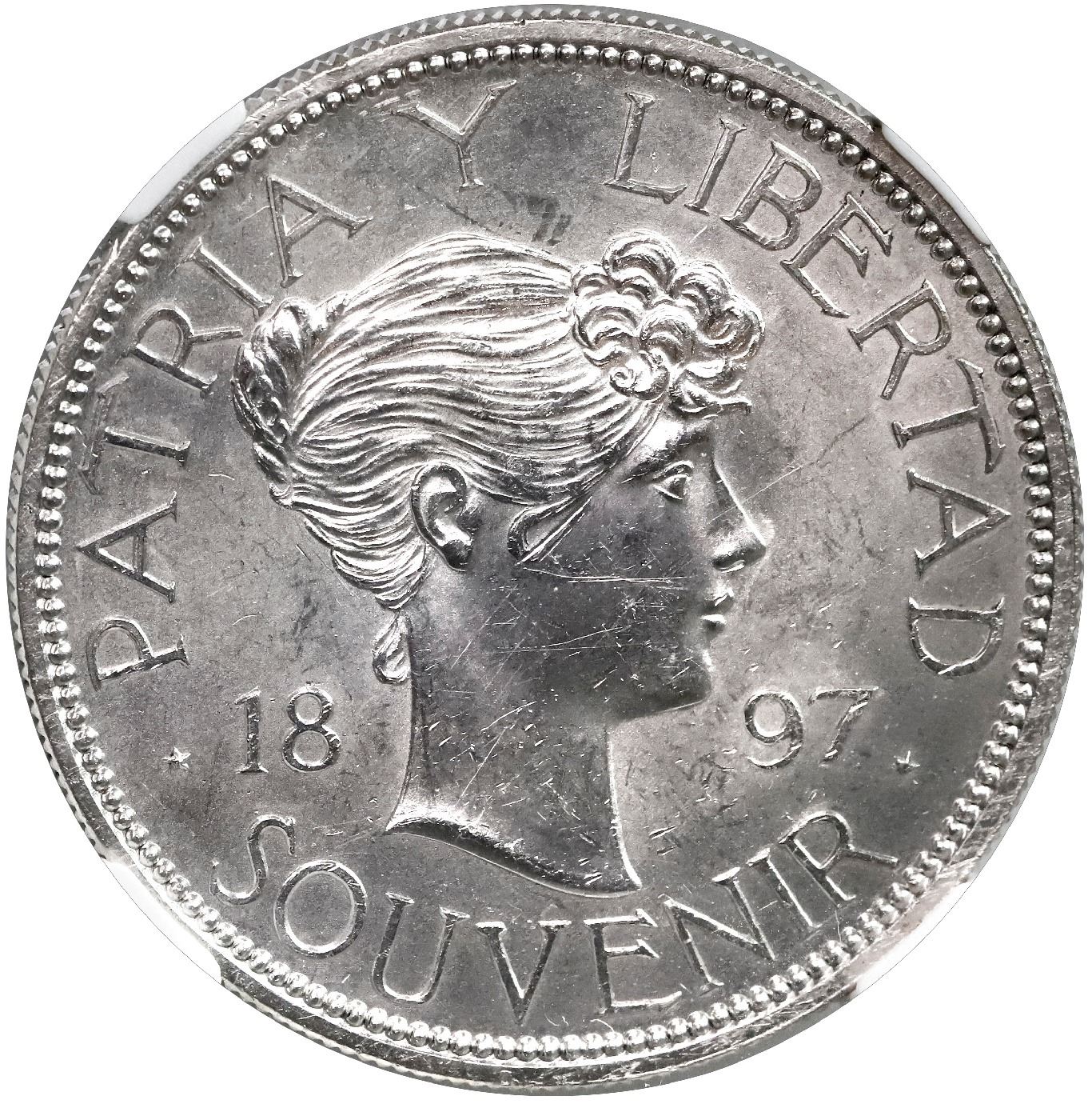 Cuba (struck at the Gorham Mint), "souvenir" peso, 1897, Type II (star below baseline of 97), NGC MS