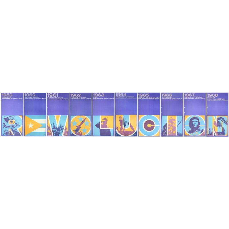 A set of 10 rare posters issued by the Cuban Communist Party to commemorate the 10th Anniversary of the Cuban revolution.