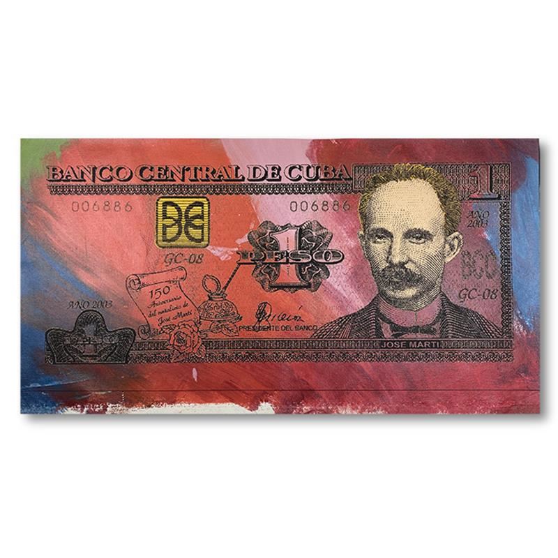 "Cuban Money " is a limited edition hand pulled silkscreen mixed media on canvas by Andy Warhol protege Steve Kaufman (1960-2010). This piece is numbered and 26/50 and hand signed inverso. Includes letter of authenticity. As is common with Kaufman's works, this piece may have perceived minor flaws, but is in overall good condition. Measures approximately 18.5" x 34.5" (image).