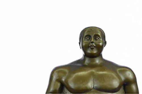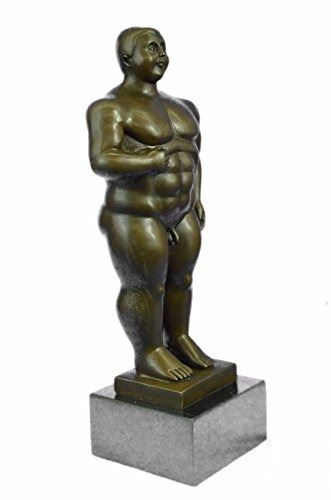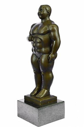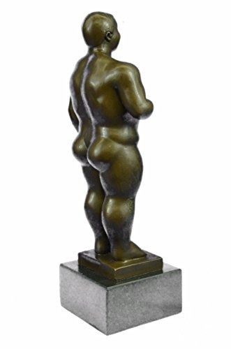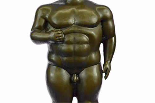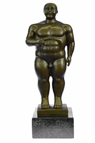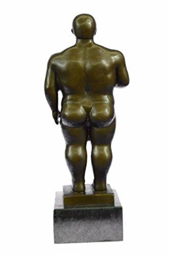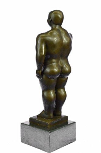 The Curvy Plumb Man Is Ready To Make His Next Move In Her Complex Strip Show. The Composition Recalls The Classical Sense Yet Adopts A Modern Abstract Flair That Gives His Body An Added Emphasis On His Curvaceousness A Tribute To Botero. He Seems To Coyly Look Up As If Blushing Due To The Gushing Admiration He Gets From The Beholder Witnessing His Body. The Bronze Sculpture Was Captured Using The Ancient Method Of Lost-Wax Casting And Finished With A Brown Patina Stain For Preservation. She Is Mounted Upon A Black Marble Base. Bronze dimensions with marble base: Height 13 X Width 4 inches. Weight: 8 lbs.Please Note: This is a reproduction bronze sculpture from the original molded and signed. This featured bronze sculpture is a recast after the original, and has been done recently. This 100% bronze sculpture is an abstract piece certain to be a conversation piece.Please Note: This is a reproduction bronze sculpture from the original molded and signed. This featured bronze sculpture is a recast after the original, and has been done recently. This 100% bronze sculpture is an abstract piece certain to be a conversation piece.