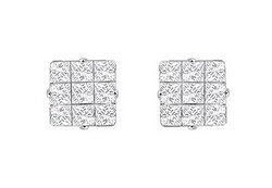 Perfectly matched square 10 MM cubic zirconia with beautifully 9 cut design stud earrings. These fashionable earrings is crafted in .925 sterling silver rhodium and comes with push back lock.