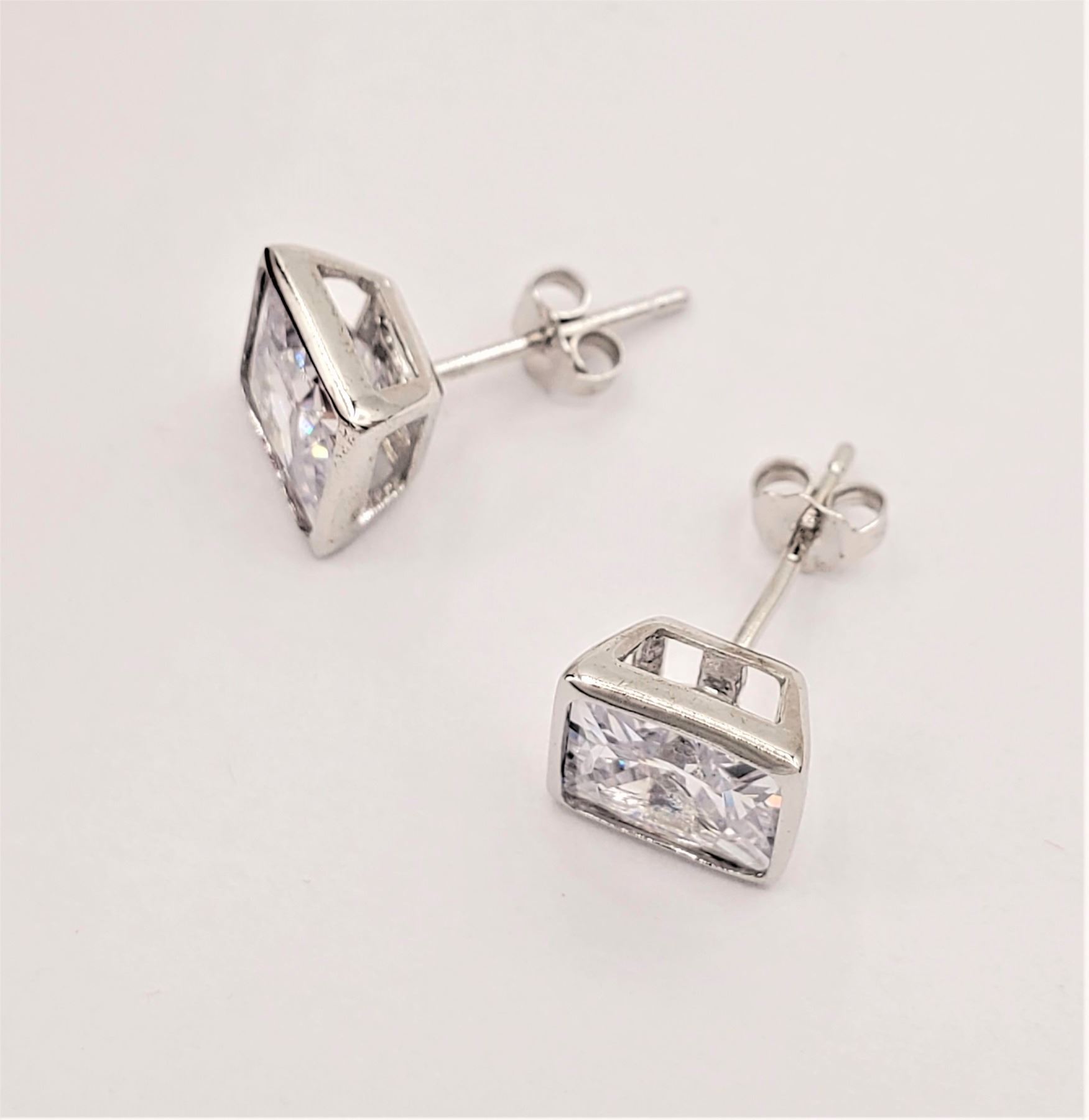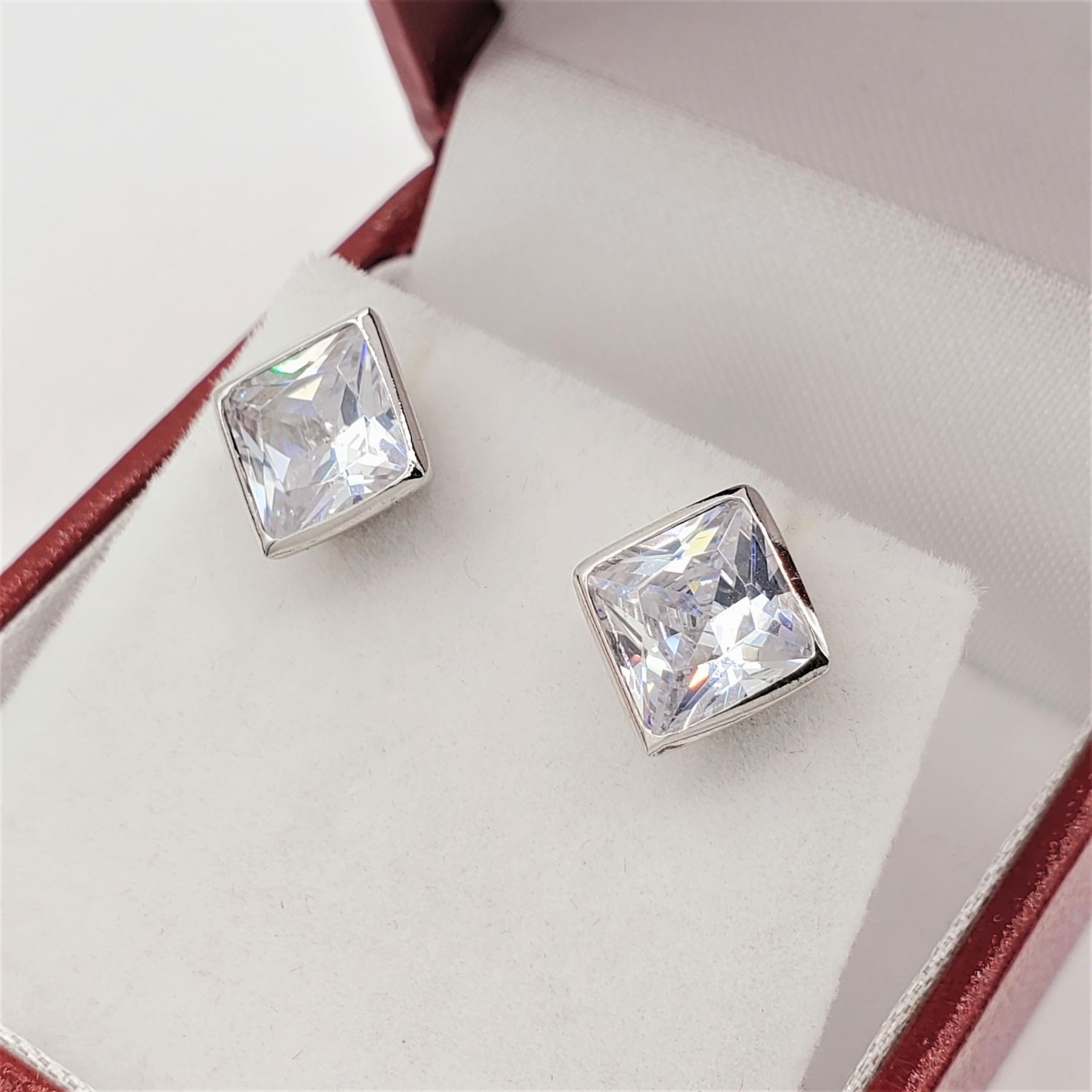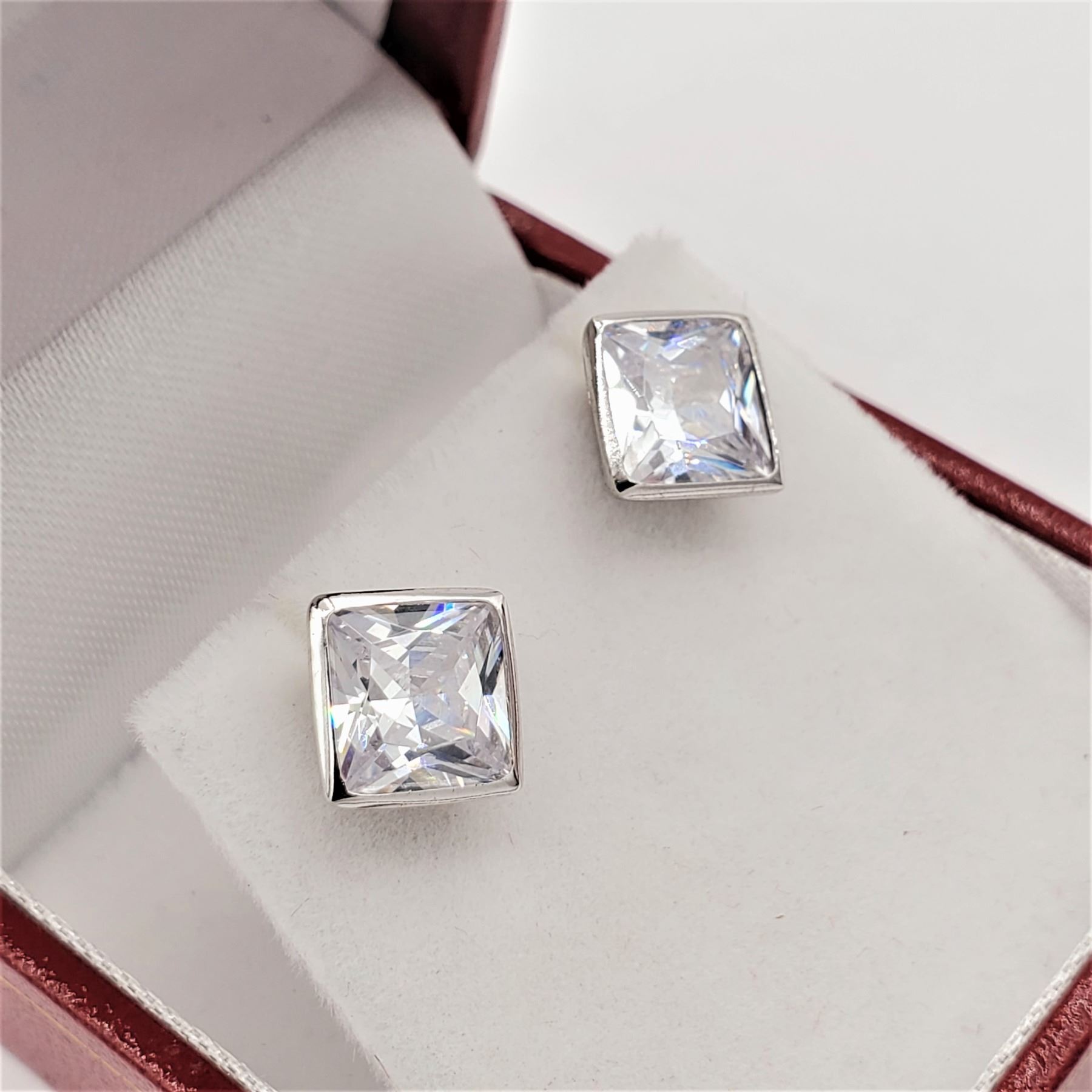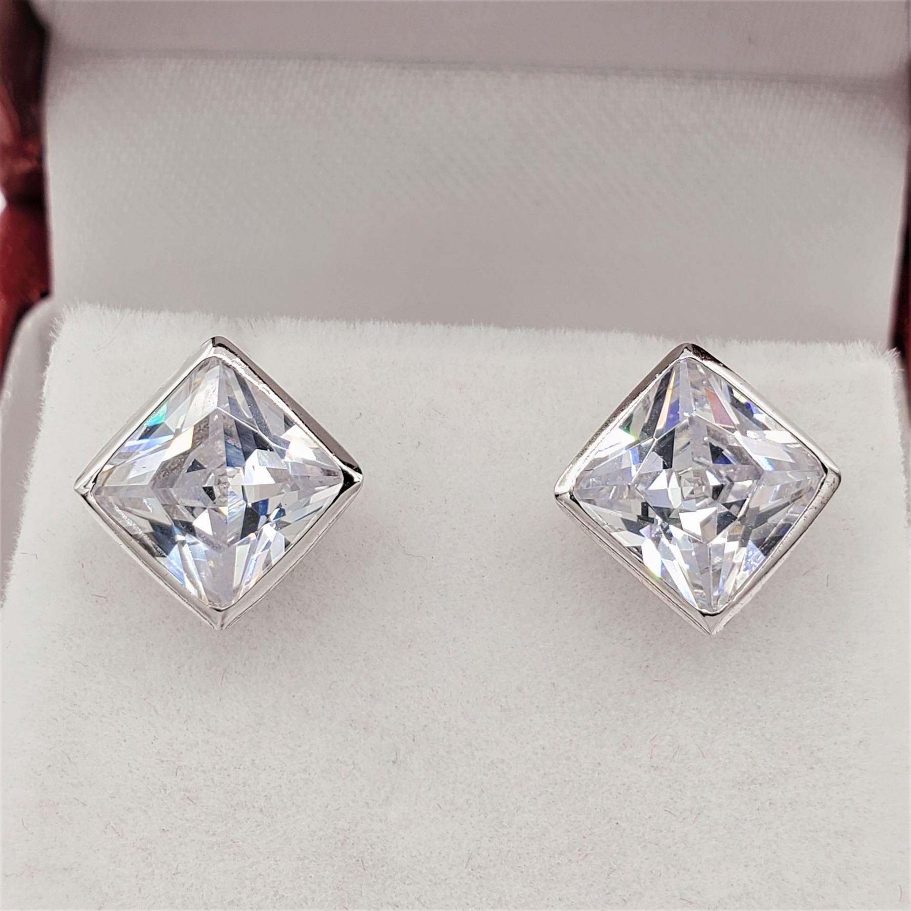 Sterling Silver 6mm x 6mm Cubic Zirconia Earrings, retail $150.00