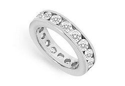 An endless circle of cubic zirconia conveys a sense of no beginning or end a symbol of your eternal love. White round CZs are channel-set in a .925 sterling silver mounting with high shine Rhodium plated. This eternity band has a total weight (TGW) of 3.00 carat.