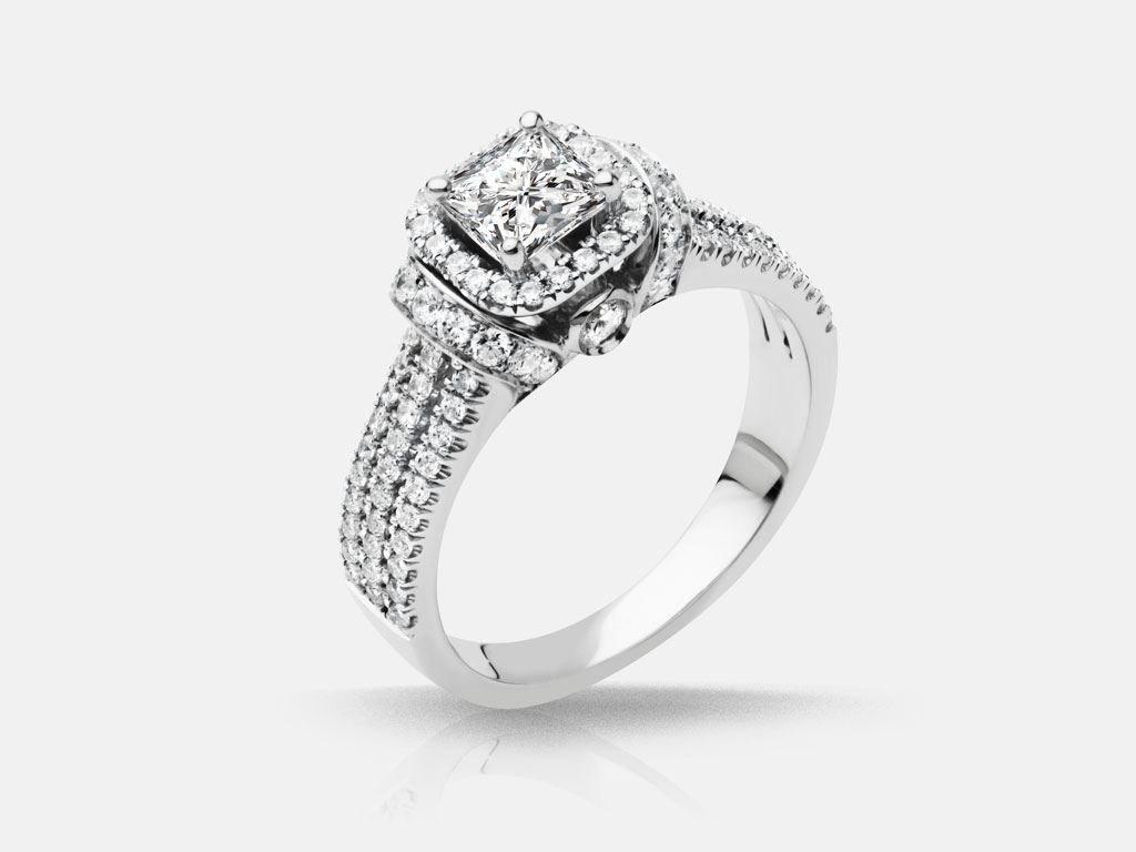 14K TT RG split shank engagement setting set w/ 96-0.61 Cts G-H SI2 side stones w/ a 5 mm CZ Center. Please note that the image shows the correct model ring, however this ring is white and rose gold.