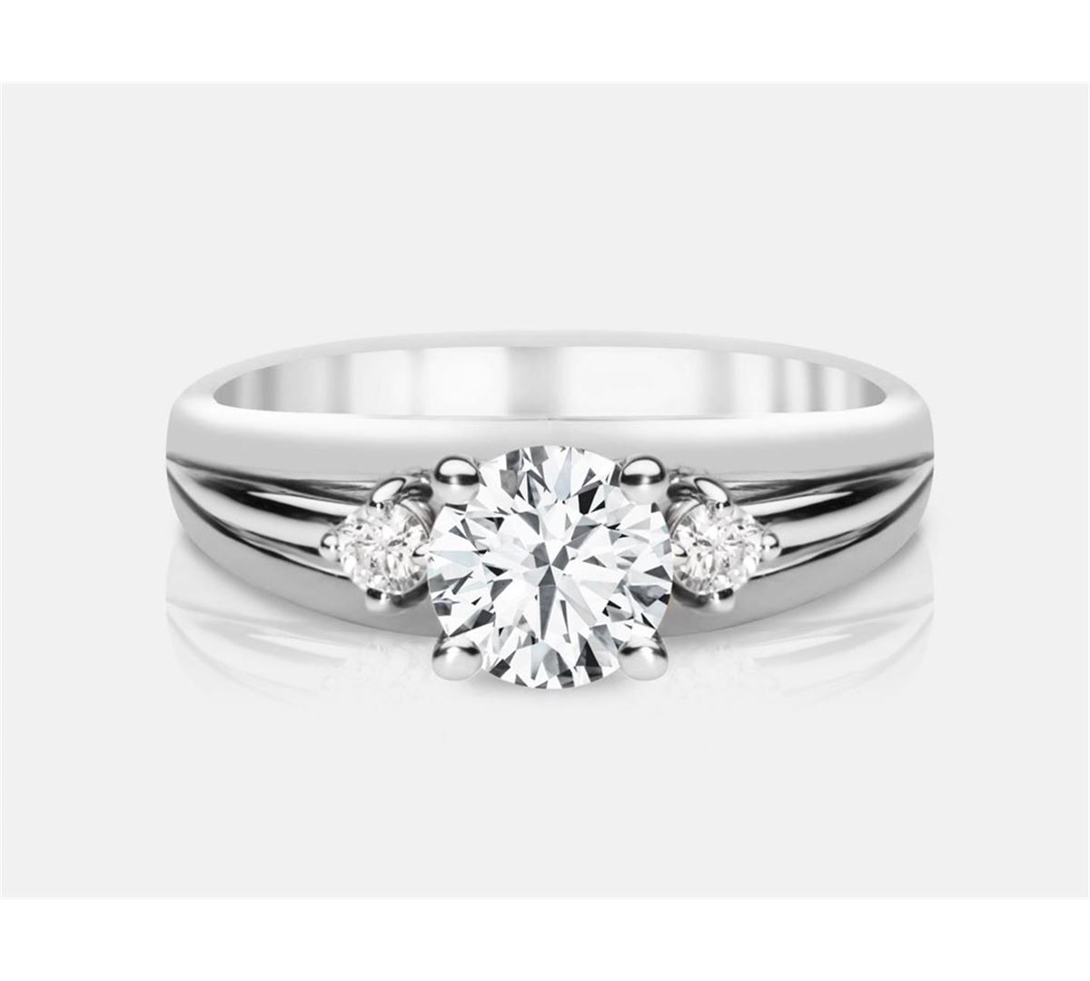 14K WG split shank 3-stone engagement setting set w/ 2-0.12 Cts G-H SI2 side stones w/ a 6.5 mm CZ Center.
