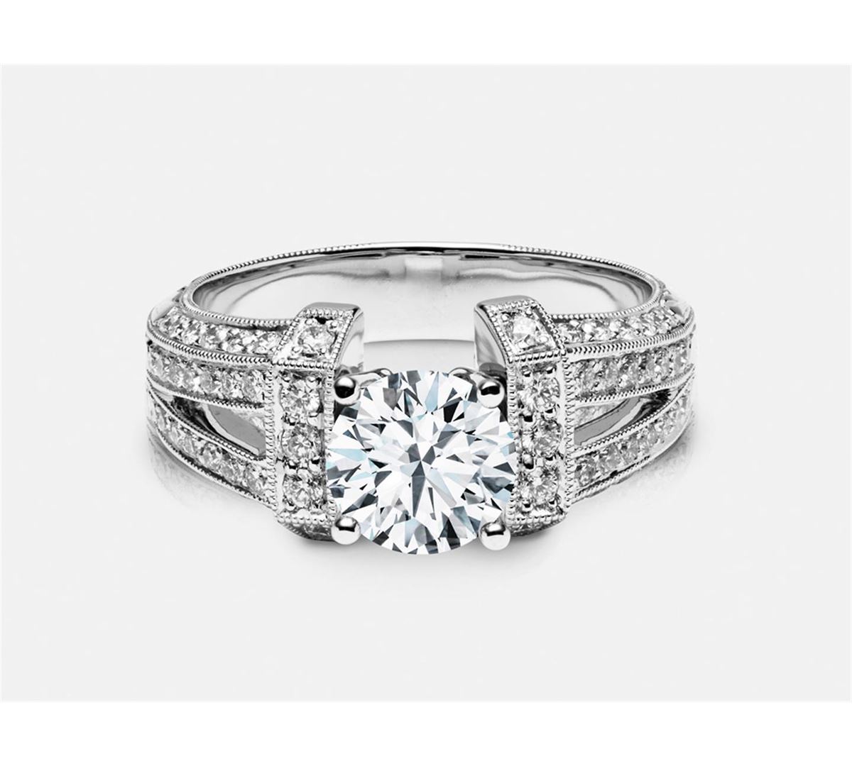 14K WG split shank engagement setting set w/ 62-0.44 Cts G-H SI2 side stones w/ a 7.4 mm CZ Center.