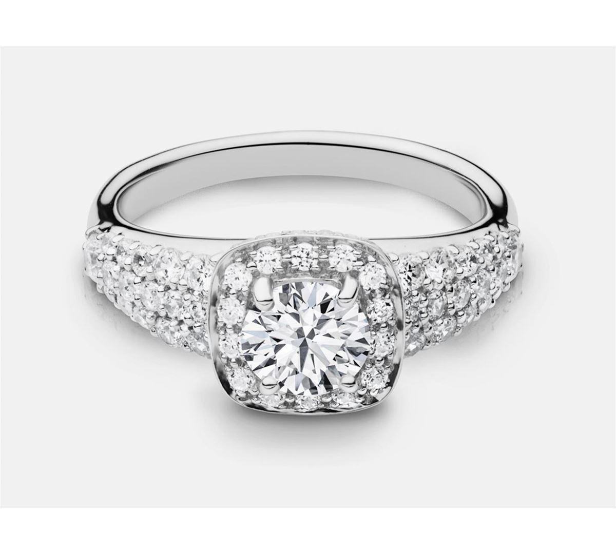 18K WG Halo Style Engagement ring Set w/ 70- 0.74 Cts G-H SI2 side stones w/ a 5.0 mm CZ Center.