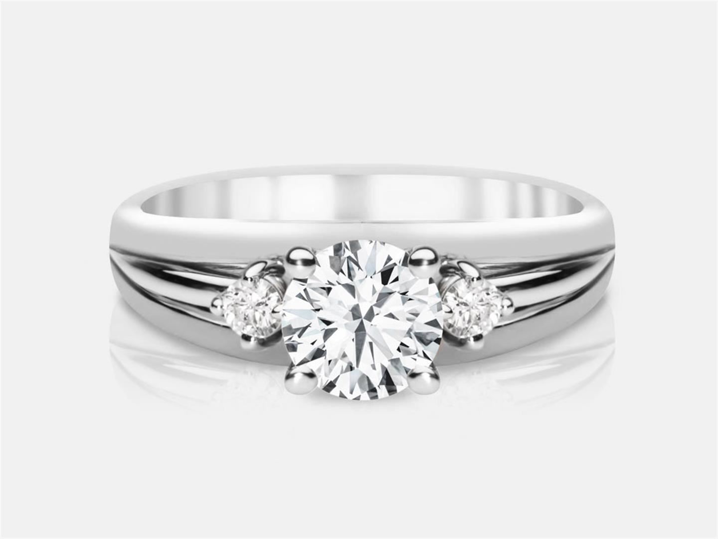 14K WG split shank 3-stone engagement setting set w/ 2-0.12 Cts G-H SI2 side stones w/ a 6.5 mm CZ Center.
