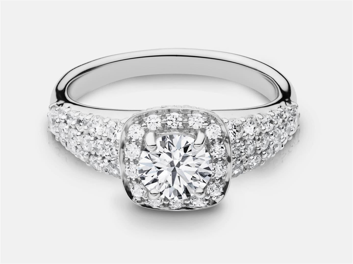 18K WG Halo Style Engagement ring Set w/ 70- 0.74 Cts G-H SI2 side stones w/ a 5.0 mm CZ Center.