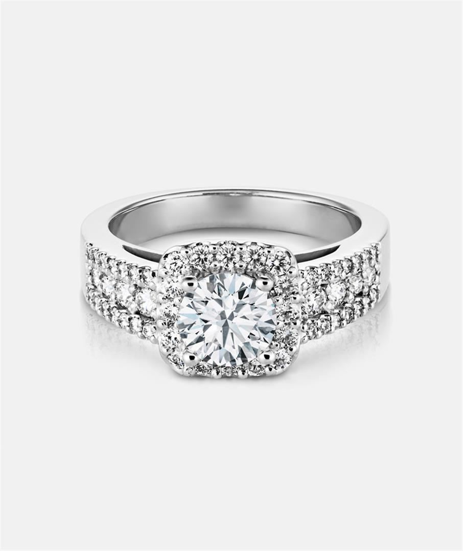 18K WG Halo Style Engagement ring Set w/ 52- 0.68 Cts G-H SI2 side stones w/ a 4.40 mm CZ Center.