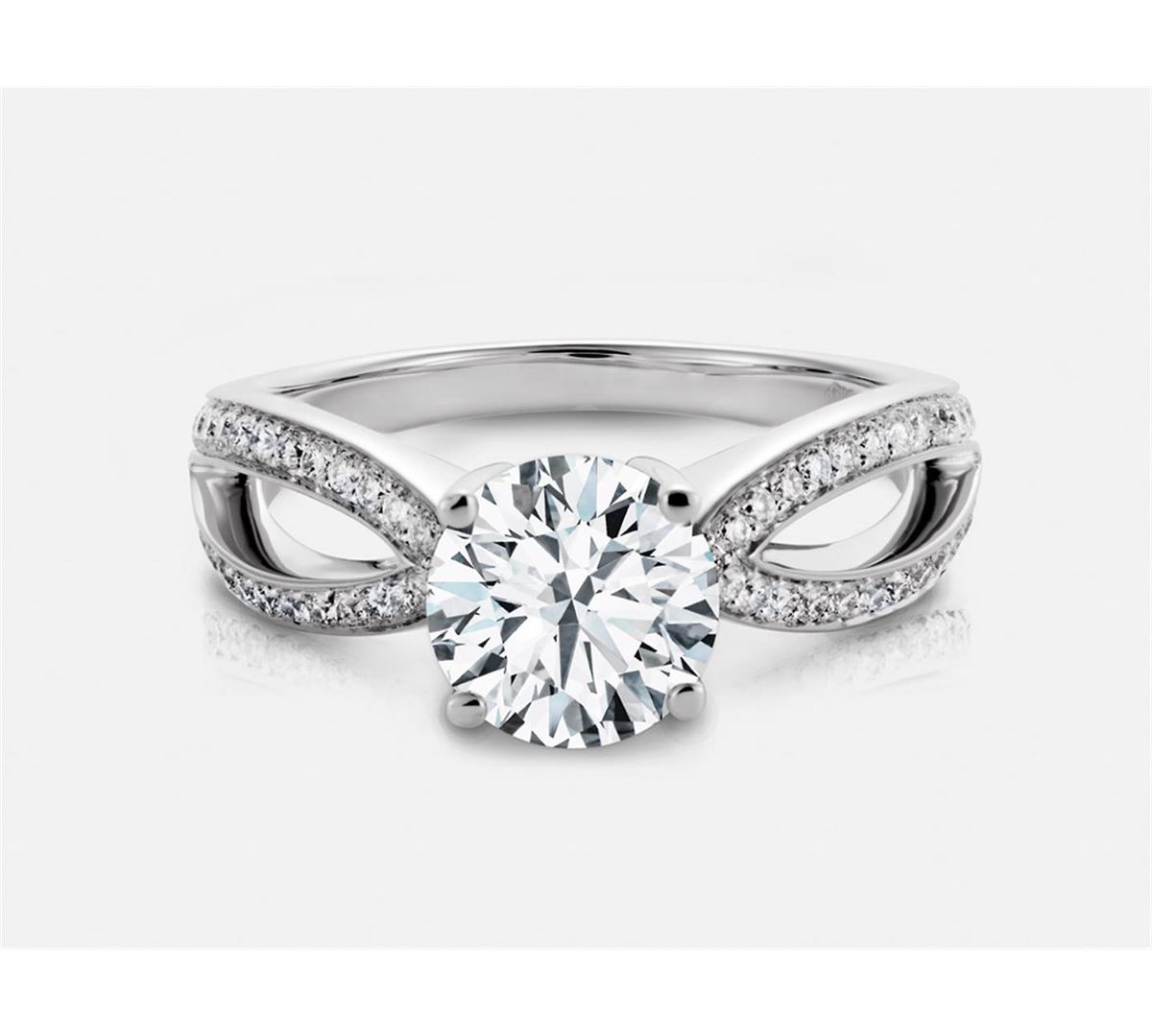 18K WG split shank style engagement setting set w/ 62-0.28 Cts G-H SI2 side stones w/ a 5.2 mm CZ Center.