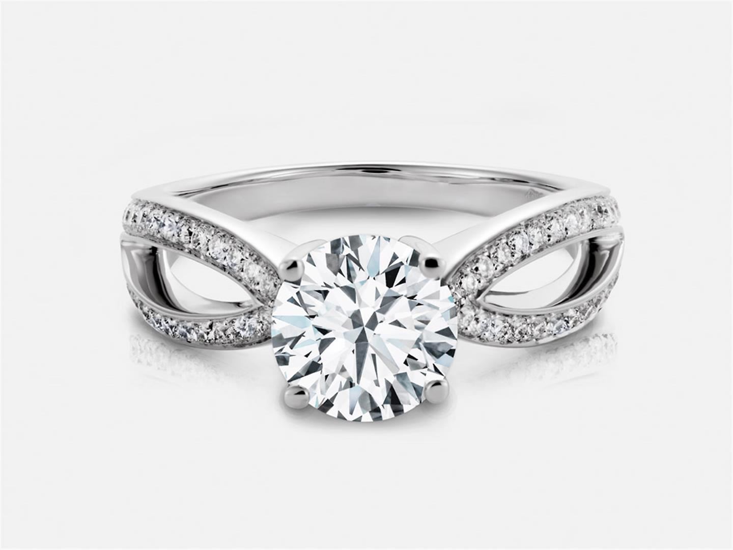 18K WG split shank style engagement setting set w/ 62-0.28 Cts G-H SI2 side stones w/ a 5.2 mm CZ Center.