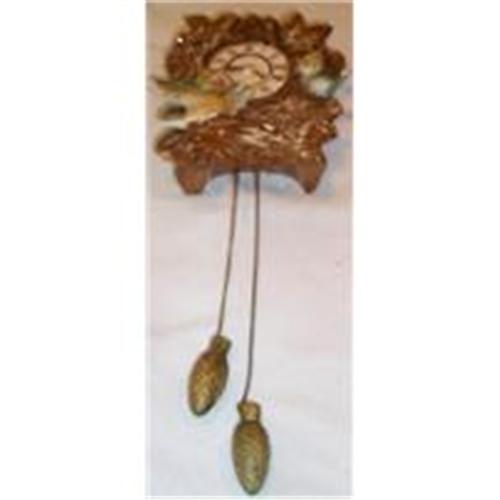 This wonderful Wall Pocket is shaped like a cuckoo Clock complet with the weight pulls. The wall pocket is in SUPERIOR condition with no chips, cracks, dings or hairlines but does have some paint wear loss. The wall pocket measures about 5" wide and 5" tall not including the weight pulls.