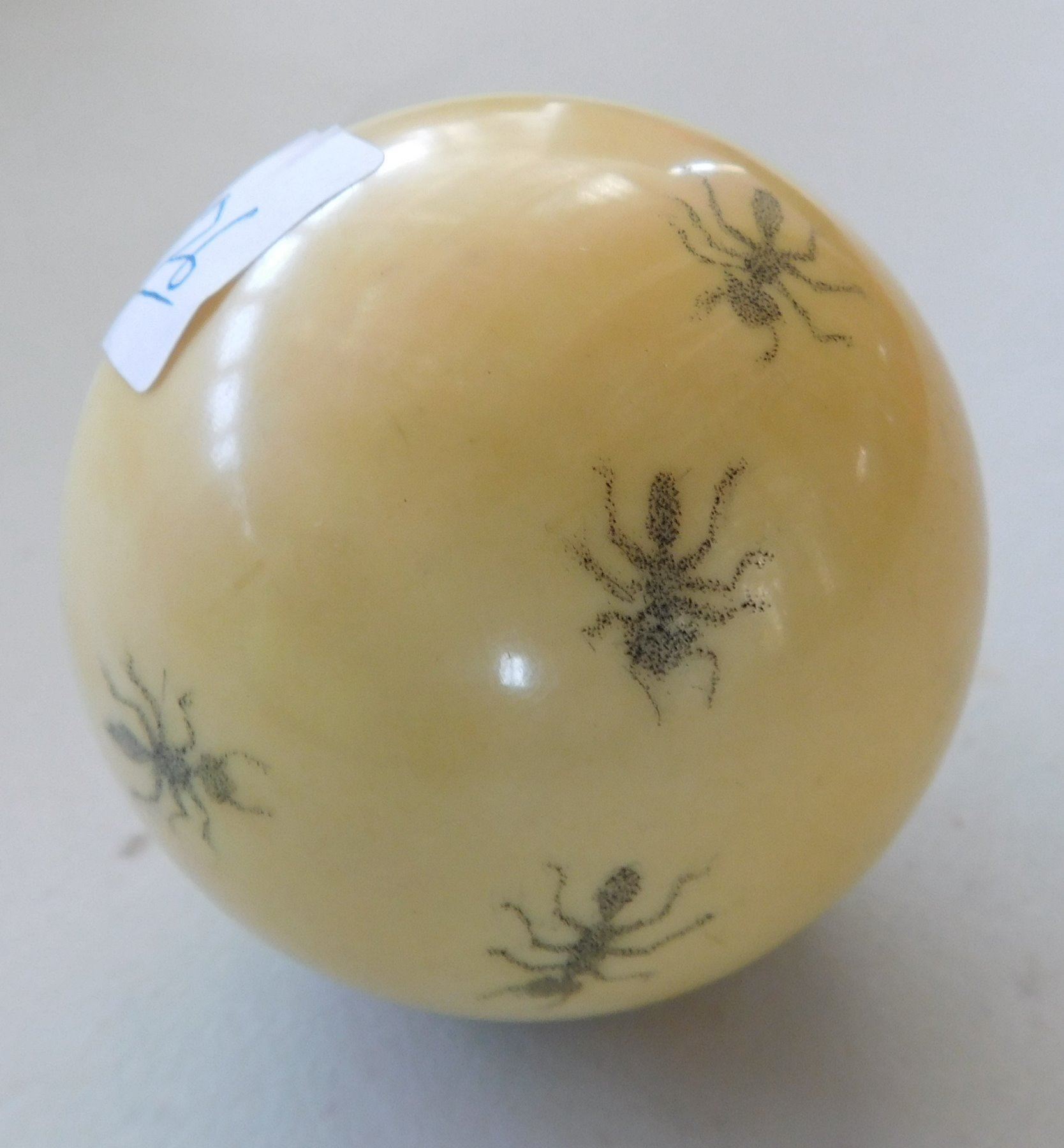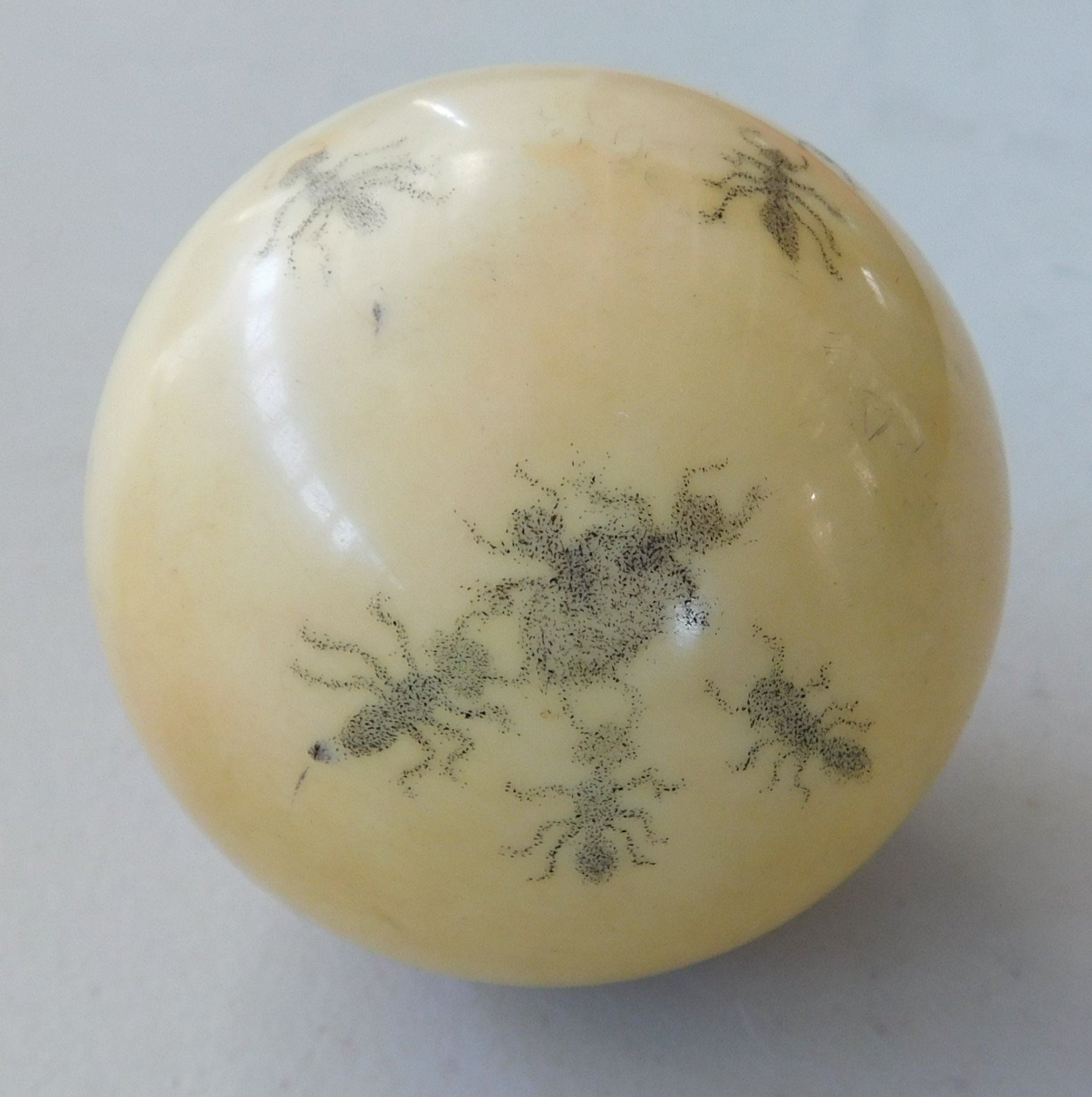 Cue Ball, modern item. Made of plastic, item measures 2.5" x 2.5" x 2.5". San Diego, CA. Steve Aho, California artist. Ants on a ball. Condition: Good, see images. Shipping: $16.50 w/insurance and signature.