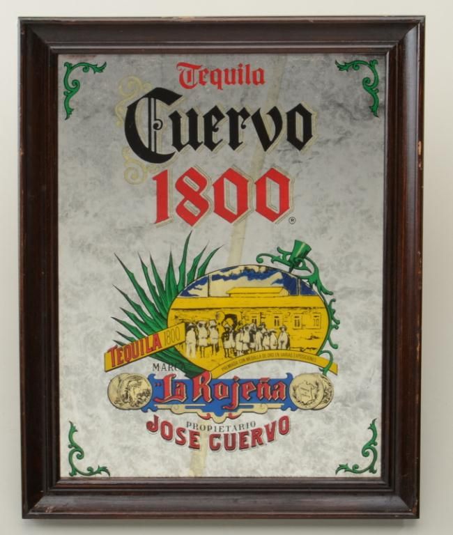 Cuervo 1800 Tequila glass bar mirror in wood frame in good condition approx. 20” x 15”. Est.: $25-$50