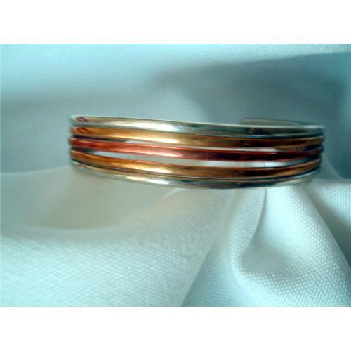 <tr><td>Title:Cuff Bangle of Mixed Metals Designer Signed</td></tr>