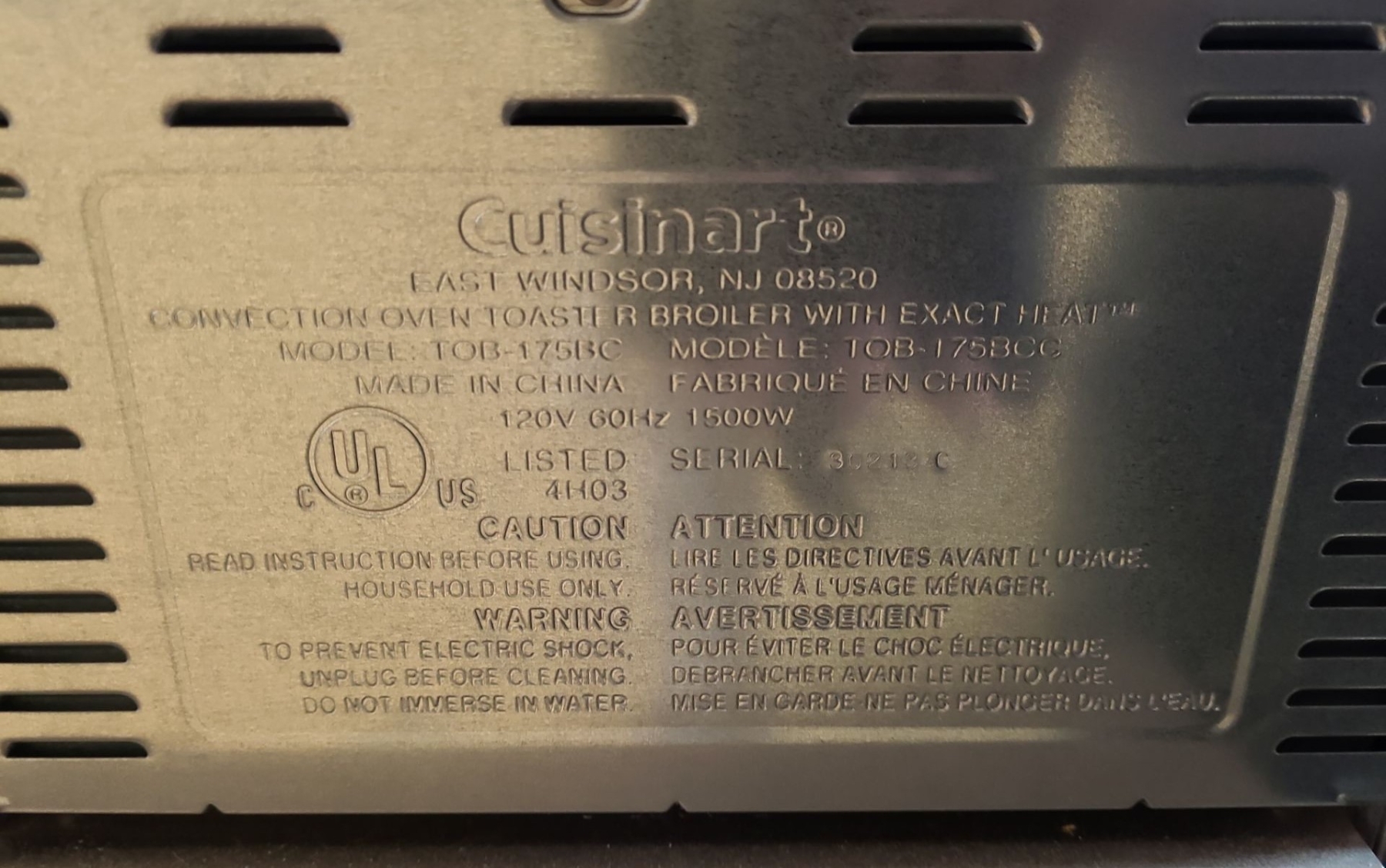 Cuisinart Convection Toaster Oven Model TOB 175-B
