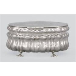 Pest, 19. sz. utolsó harmada, ezüst, Bihari István, oldalán hólyagos dísz, négy öntött lábon, "SZI" monogramm vésettel, belül egykor aranyozva, 195 g; m: 6,5 cm