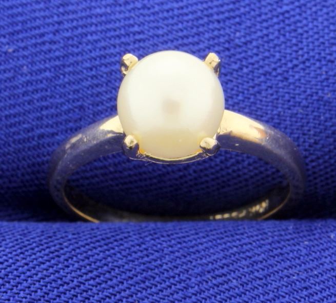 This fantastic 8mm Cultured Pearl with great luster and nice cream tone color sits in beautiful and classic10k yellow gold four prong mounting. Simple but always very elegant! Size 6 2.2g