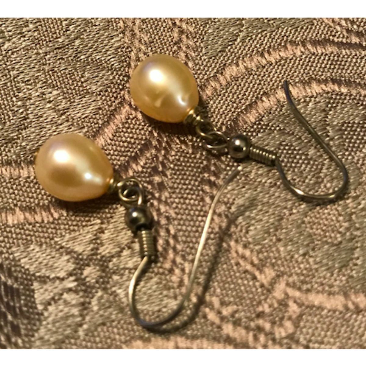 8-10mm full drilled cultured pearl drop hook sterling silver earrings.