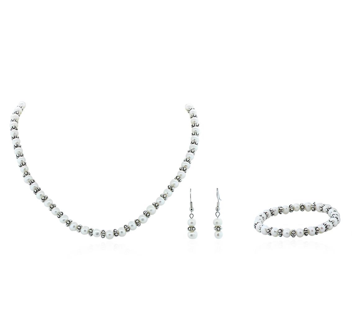 Cultured White Pearl Necklace, Bracelet and Earring Set
