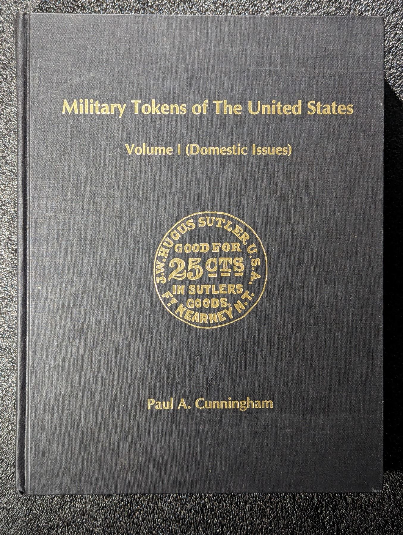 Cunningham, Paul A. MILITARY TOKENS OF THE UNITED STATES. VOLUME I (DOMESTIC ISSUES). Michigan Exonumia Publishers, Tecumseh. 1995. 4to. xiii, 440 pages. original black cloth, gilt. Inscribed by the author. Appendices. B&w historical and token photos and line illustrations throughout. English text. The Melvin and George Fuld Library. Fine. This book is a guide to the military tokens issued by the military installations of the United States armed forces and this volume only includes domestically issued tokens. The tokens are organized by state and then alphabetically by installation and then by denomination. Each token is described and where possible a photo is presented. Lot weight: 3 lbs 11oz. Subject(s): United States Tokens.