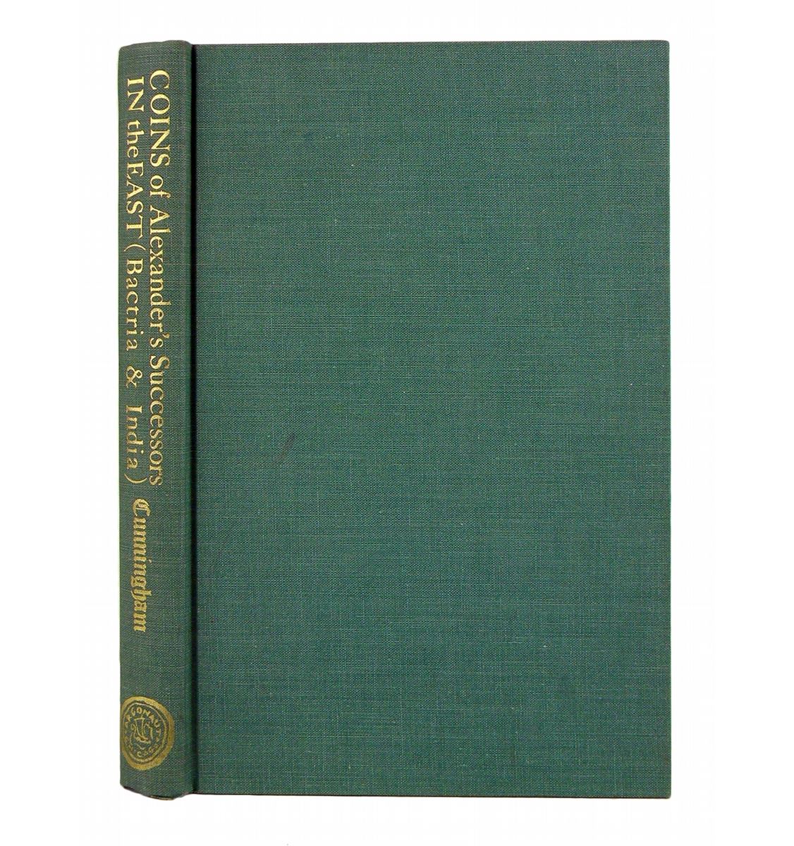 Cunningham, A. COINS OF ALEXANDER'S SUCCESSORS IN THE EAST, (BACTRIA, ARIANA & INDIA). Reprint. Chicago: Argonaut, 1969. 8vo, original green cloth, gilt. (4), 337, (1) pages; map; 16 plates of coins, alphabets and monograms. Previous owner's signature, else fine. Reprint of the 1884 edition, still of interest.