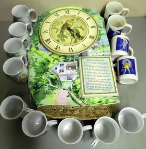 Norman Rockwell & Norton salt, as well as bird wall clock.