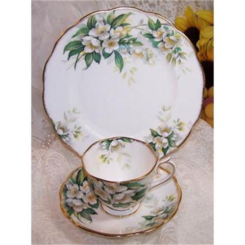 Up for your consideration is a Tea Cup, Saucer, and Salad Plate Trio in Orange Blossom by Royal Albert: