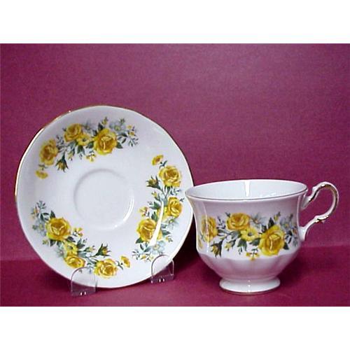Pretty vintage set - Tea cup & saucer - Made by Royal Vale - Fine Bone china - England - It depicts pretty yellow roses - Buyer to Pay 7.00 for ship&insce.