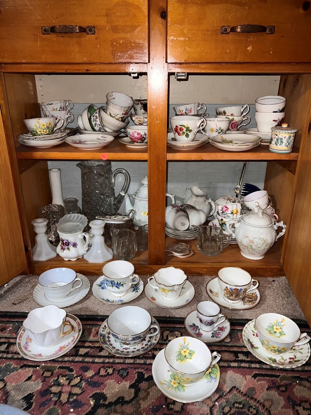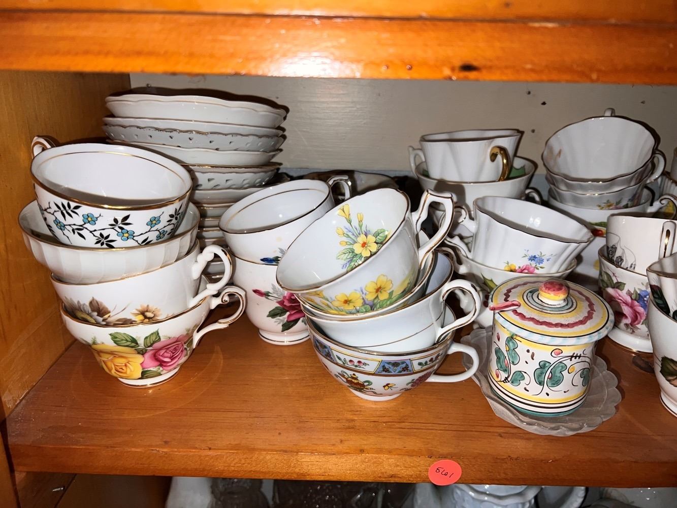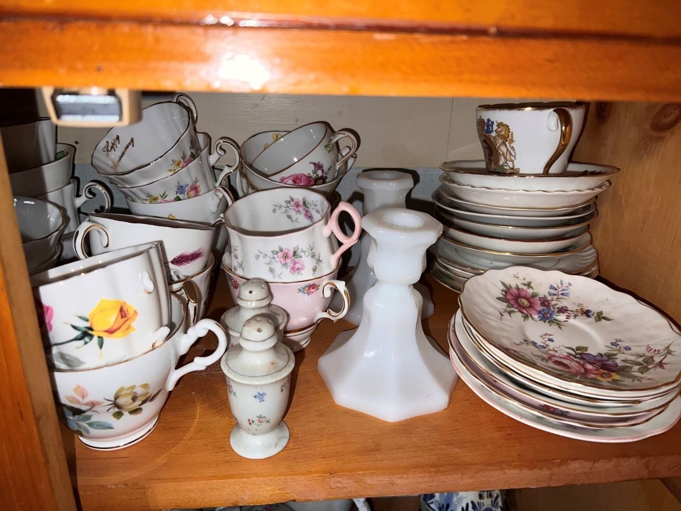 Unbelievable cup and saucer collection, pitchers, sugar and creamers, candle stick holders, and teapot, etc. All from the Lifetime Collection. Approx. 106 pieces.