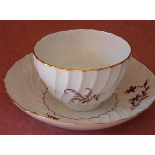 Fluted, Hand Painted.Puce Colored dot on saucer, puce colored 4 or L on cup. Mint. No repair, no chips etc. Circa 1800. Minton or Worcester.Deep saucer. Dates to the days when they poured the tea into the saucer to cool it quickly.