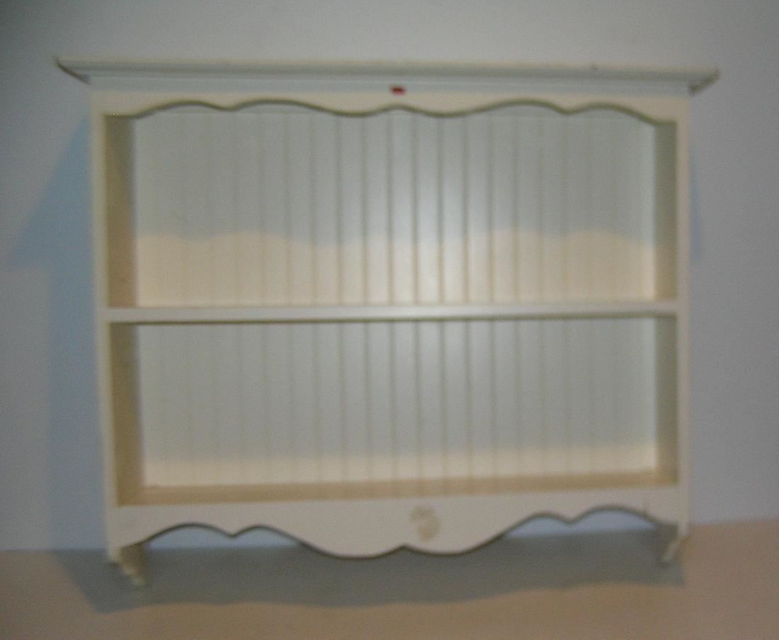 Cupboard top with plate slats cut into shelves for display est. value $75.00-$80.00